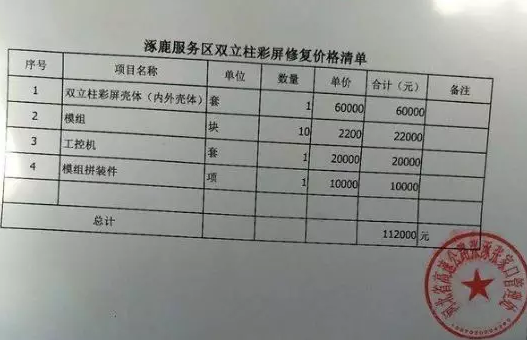 要知道一位商家按照最好的材料計算,這樣的顯示屏報價也只有1.8萬-2.5萬。真是不知道河北省高速公路張涿張家口管理處開出的清單依據(jù)是什么。