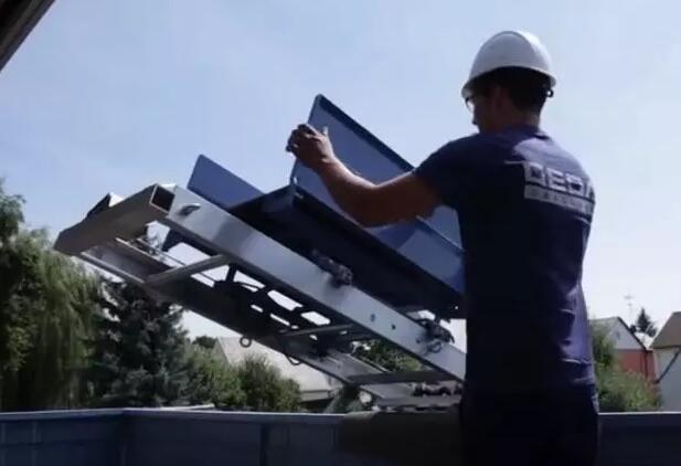 首先將運貨架裝進底部的梯段,然后就是將剩余的梯段一個接一個,首尾相接拼裝起來。