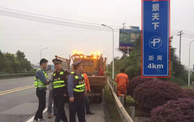 隨即,路政員立即進行拍照上報。下午,株洲西路政大隊路政員走訪該房地產銷售樓盤中心,告其樓盤銷售負責人,在高速公路公路用地范圍內修筑非公路標志牌屬于違法行為,勒令自行拆除。
