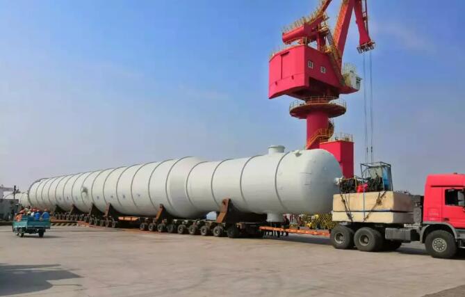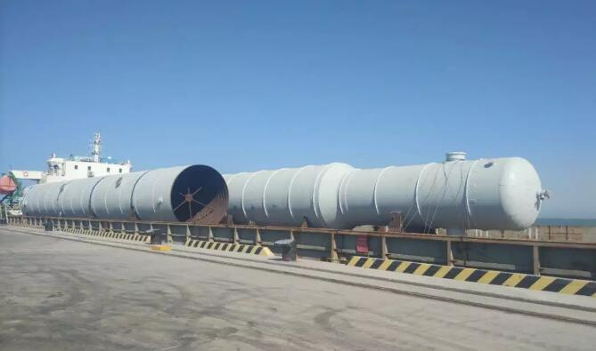 該船貨物是廣利港腹地企業定制的“脫乙烷塔”和“丙烯丙烷塔”,最大件長56米、體積1144立方米、件重280噸。貨物自大連旅順港裝船,通過水路聯運的方式,經廣利港轉運至企業,使公路運輸的距離縮減至最低,極大降低了企業的運輸成本