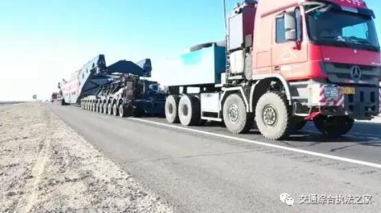 近日,特變電工股份有限公司新疆變壓器廠生產的目前最大、最重的變壓器由大件汽車運輸有限責任公司裝車啟運。該大件運輸車輛總長115米,寬4.9米,高4.98米,車貨總重量達610噸,共28軸,采用2臺奔馳8x8、2臺3縱列12軸線的液壓平板車、1臺鉗夾式大型框架組成。面對如此艱巨的護送任務,自治區路政管理局結合“不忘初心、牢記使命”主題教育,主動靠前,多措并舉全力保障超大型變壓器安全運輸。
