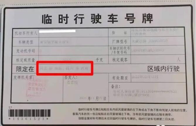 臨時(shí)行駛車(chē)號(hào)牌(背面)