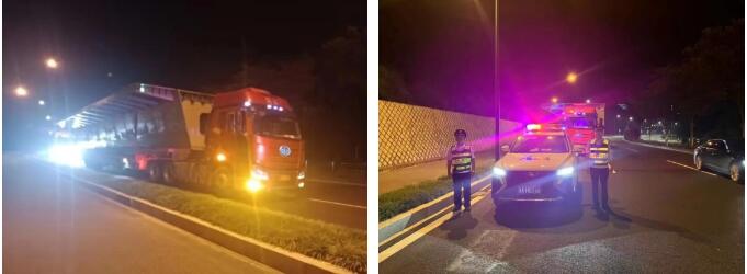 項目負責人沈曉杰說:“國道上社會車輛較多,運輸路線環境十分復雜,加上夜間行駛視線不佳,運輸難度及安全風險十分大。這個項目又比較急,鋼箱梁必須按時運到。區交通運輸行政執法隊為我們安全護送,既保證了鋼箱梁安全運到,也保證了項目的正常運行,真的非常感謝。”