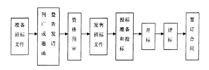 大件運輸項目可根據實際情況采取公開招標或邀請招標,在招標中,各項工作的先后次序的銜接和工作步驟如圖所示。